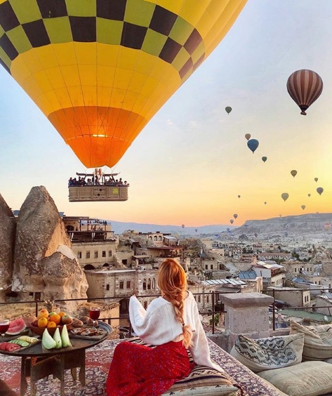 ЛЕТ СО БАЛОН: од долините пред „Музејот на отворено-Гореме„ во мугрите, пред волшебното изгрејсонце на Кападокија, можност за лет со балон над „самовилините оџаци„ на Кападокија. Оваа авантура никогаш нема да ја заборавите... уживајте во убавината и возбудата додека балонот нежно полетува. Слушајте го татнежот на печката што го загрева воздухот во балонот. Восхитувајте се на неверојатниот поглед на повеќе од 100 балони во лет, и секако...чудесното изгрејсонце. Во еден момент балонот ве издига 700 -1000 метри, поглед од кој ви застанува здивот. На крај на летот добивате сертификат за летање со балонот. Враќање во хотел.