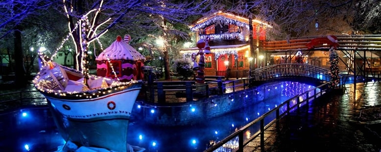 Потоа се упатуваме кон Драма и Божиќниот пазар. Влегуваме во градот од соништата каде се е украсено и светликаво, безброј лампиони, големи балони, осветлени дрвја, елки, кловнови, бина на отворено со пеачи, голем луна парк, рингишпил, куќата на Дедо Мраз....