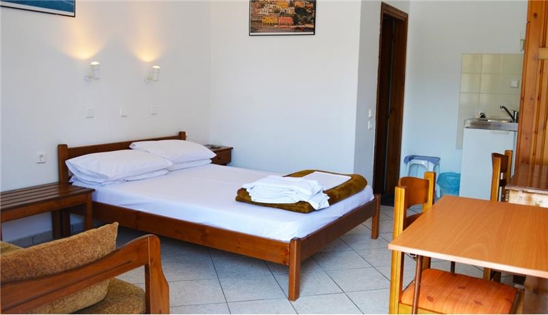 Студиото располага со еден дупол кревет и два поединечни кревети на спрат,мини кујна со садови,решо со две рингли,мал фрижидер со комора,чајник ,тостер,тв,клима уред, плакар за алишта,дворче со маса и столови.Студиото располага со стандардно купатило со вц со фен за коса .