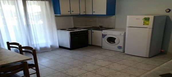 Апартманот се наоѓа на први кат.Во кујната има еден поединечен стандарден кревет и еден кревет на извлекување.Кујната е опремена вградена плотна со две рингли,голем фрижидер и комлетен кујнски инвентар.Во кујната има маса за ручавање, ТВ и клима уред.Спалната соба е со дупол кревет (француски),плакар за алишта.Има сопствено купатило и ВЦ. Апартманот излегува на тераса со страничен поглед на море.