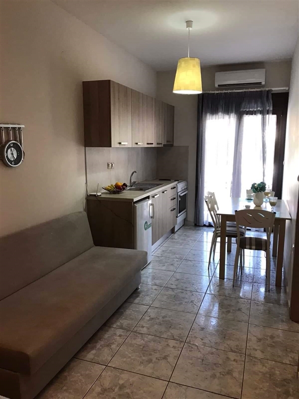 Апартман број 3А (1/4 ) – приземје, простран апартман. Има поглед кон улица. Има спална со брачен кревет и во кујна помал кревет (наменет за две деца или еден возрасен) и плус софа на пуштање. Опремен е со квалитетен мебел, сопствен тоалет, одлична кујна со сите потребни елементи (голем фрижидер, шпорет итн.). Има голема тераса со маси и столови.