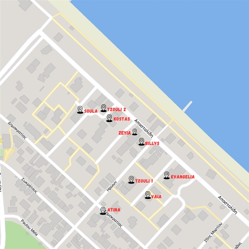 Куќа “Kostas” се наоѓа на одлична локација на само 50 метри од прекрасната песочна плажа, а во многу мирен дел. Куќата располага со високо квалитетни апартмани и дуплекс апартман. Користење на клима уредот, интернет (wi-fi) и сет пешкири се вклучени во цената. Има паркинг веднаш пред вилата. Туристичката такса се плаќа во агенција при уплата и истата изнесува 2 евра на ден по апартман. Куќата е добро позната кај нашите патници, бидејки е повеќе сезони во нашата понуда.