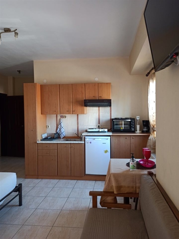 Студио број 2 (1/3 + 1)– студио со голема тераса, целосно опремена кујна, квалитетен мебел и сопствен тоалет. Располага со брачен кревет,стандарден кревет и софа за дете.