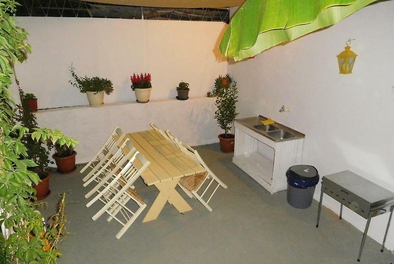 Вилата има заеднички простор / двор со голема маса и опремен простор за скара.