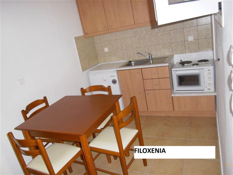 ВИЛА ФИЛОКСЕНИЈА се наоѓа во крајниот дел од плажата на Врахос. На 50 метри од плажа, со прекрасен двор, природни сенки од маслинови дрвја и лулашки за деца. Вилата има сопствен паркинг и лежалки на плажа кои се бесплатни доколку гостите порачаат пијалок од барот. Вилата располага со трокреветни студија и четворокреветни апартмани. Сите се со балкон, комплет опремена кујна, бања, фрижидер, ТВ и Wi-Fi, клима (со доплата 7евра на ден ), пешкири и постелнина се менува 2 до 3 пати во текот на престојот (зависно 7 или 9 ноќи), чистење секојдневно.