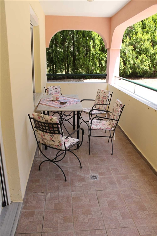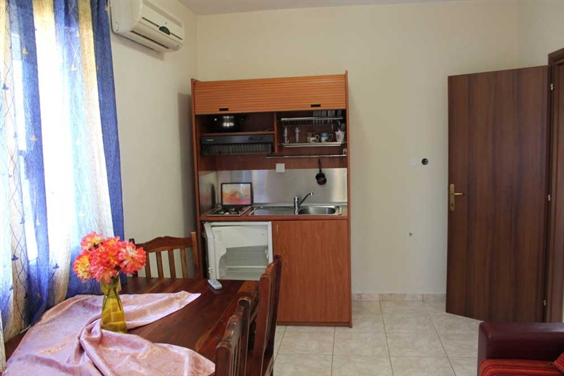 Четирикреветен апартман на приземје. Во првата просторија има еден кауч на кој можат да спијат едно возрасно лице или две деца на возраст до шест години, како и еден помошен кревет на кој може да спие едно лице, комплетно опремена кујна, клима. Во втората соба има еден брачен кревет, тераса, купатило и клима.