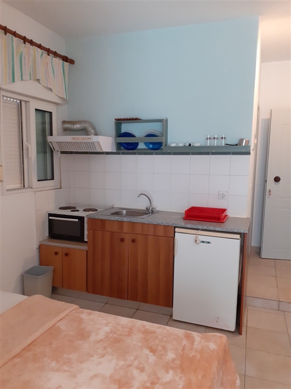 Студио 5 – 1/2 +1 брачен кревет по грчки стандард и 1 единечен кревет фрижидер, опремена кујна, шпорет БЕЗ рерна, основни садови за соодветниот број на лица , ТВ, интернет, купатило, клима, тераса со страничен поглед на море.