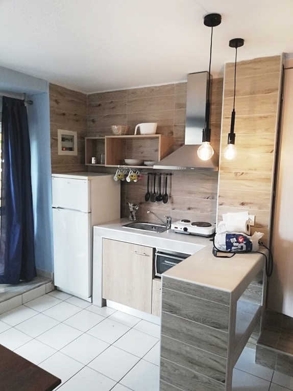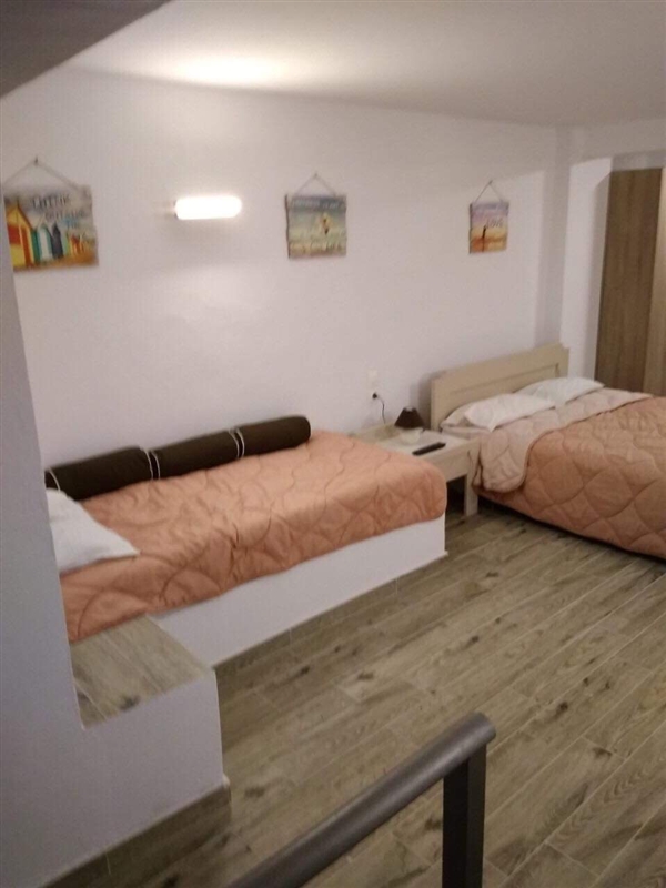 - Четворокреветниот апартман има брачен кревет во спалната и два единечни кревети во кујната и се наоѓа на втори кат.