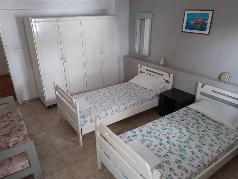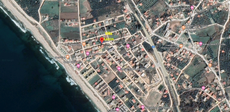 ВИЛА “ЛАЗОС”– на околу 90 м. од плажа. Располага со: 1/2 студио (еден дупли кревет), 1/3 апп (еден дупли и еден поединечен кревет), 1/2+2 аппартман (спална соба со 1 дупли и дневна соба со 2 кревети-за деца, 1/3+2 аппартман,во спалната соба има 1 дупли кревет + поединечен кревет и дневна со 2 кревети за 2 деца. Сите имаат опремена кујна, ТВЦ, тв, WI-FI, тераси, и 1 дуплекс апартман на приземје 1/2+1/2+2 погоден за 2 фамилии со 2 спални-една спална со француски, а другата спална со два одвоени кревети, плус голема кујна со дневна, каде има можност за спиење на 2 деца со ТВЦ, тв, WI-FI. Климата не е вклучена во цената-доплата на лице место (4 еур за соба, 6 еур за дуплекс апартман). Координати: 39.068126, 20.690156