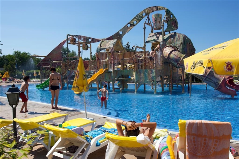 Хотелот се наоѓа на околу 250 m од плажата и околу 3 km од центарот на Сончев Брег. Има отворен базен, детско игралиште, билјард, тениско игралиште, масажа, фитнес, мини аквапарк, фризер. Секоја соба е климатизирана и има телефон, фен, бесплатна Wi-Fi конекција, Сат-ТВ, минибар, балкон и бања.