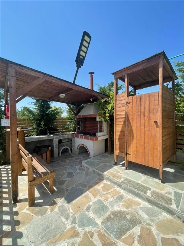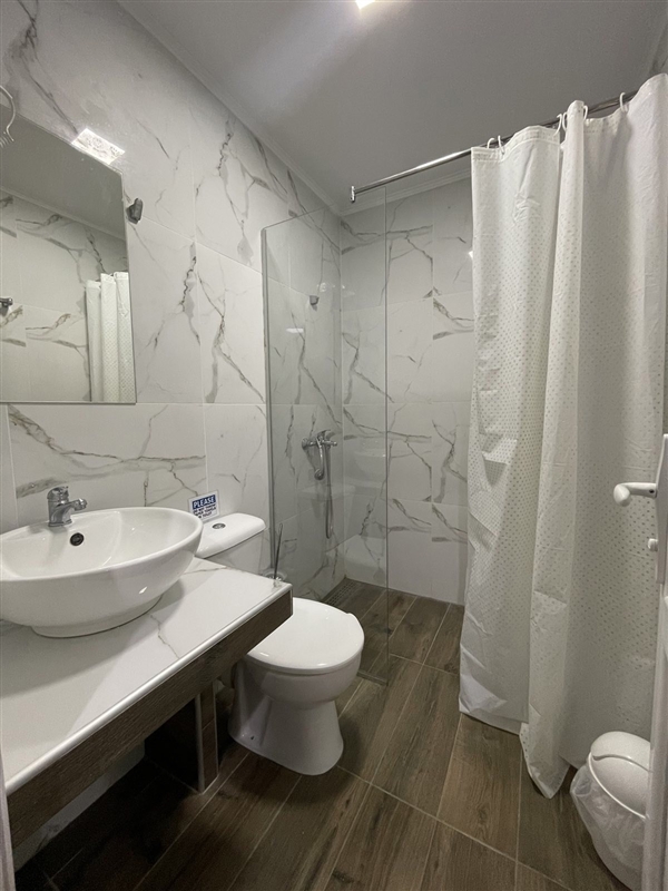 - Апартман 1/5+2- на горниот кат една спална соба со брачн кревет и една спална соба во брачен и единечен кревет, на долниот кат одделена опремена кујна со аголна гарнитура на спуштање, ТВ, бања со фен, тераса.