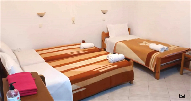 бр.2 1/3 еко студио за 3 лица, со 3 единечни кревети, студиото е именувано еко бидејки нема директени излезна тераса, туку дотерасата се стигнува преку надворешен ходник.