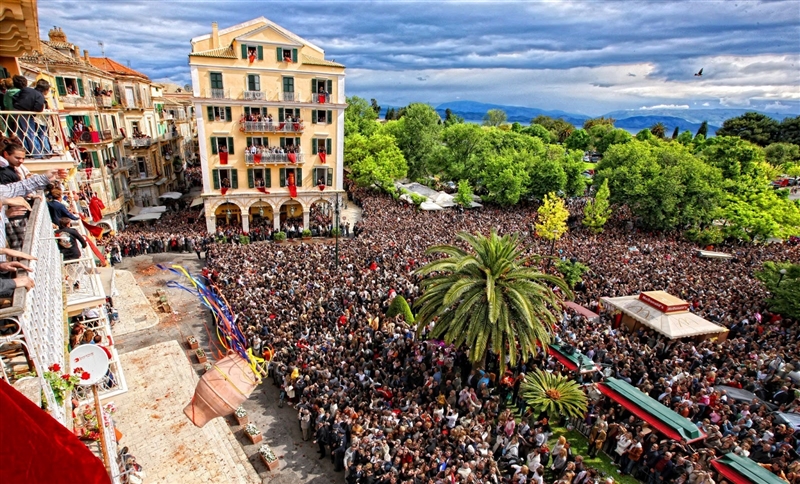 Прославувањето на Велигден на остроф Крф се смета за нај традиционално во цела Грција. Повеќе илјада туристи се собираат на тој ден да го одбележат овој христијански празник и да се дел од оваа прекрасна комбинација од богата историја на островот со традиционалните религиозни обичаи