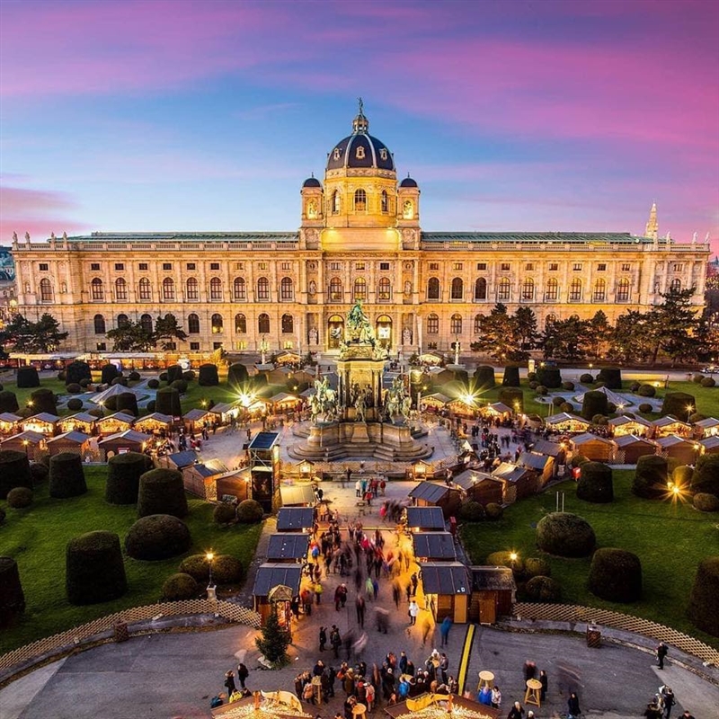 Појадок. Панорамски разглед на Виена: Дворецот Белведере изграден од Еуген Савојски, обиколка на Рингштрасе (кружната улица) околу која се изградени најзначајните објекти во Виена, Музејскиот кварт, плоштадот Марија Терезија, еден од најубавите комплекси препознатлив по двата музеи близнаци, Парламентот, Универзитетот, Операта... Факултативна посета на Кралскиот дворец Шенбрун, летната резиденција на Франц Џозеф, посетена од милиони туристи годишно. Палатата заедно со паркот е најголема туристичка атракција во Виена, под заштита на УНЕСКО. Слободнo време за шопинг по познатата улица Mariahilferstrasse, посета на некое од виенските кафулиња и уживање во “melange” кафе и Сахер торта или посета на ресторан и можност да се проба “вистинската” виенска шницла и Пилснер пиво. Посета на божиќниот Базар, да се осети празничната магија со мирисот на ароматичните пекарски производи, печени бадеми, слатки и топли пијалоци за загревање. Рингишпил и забавни работилници за деца, божиќни подароци, весела музика. Ноќевање.