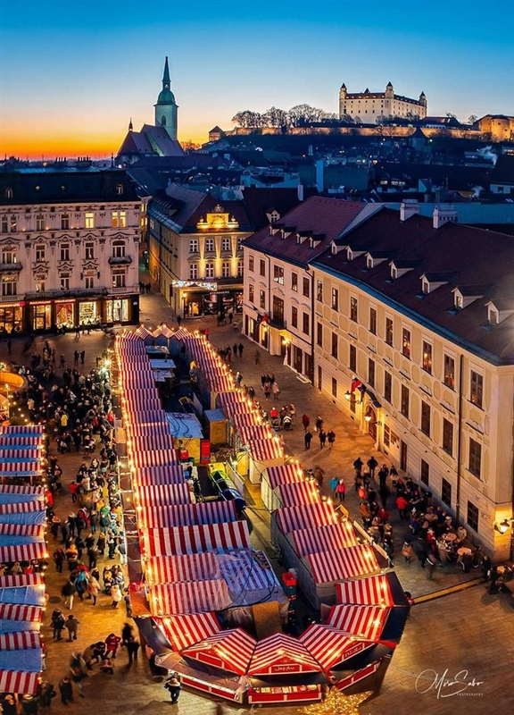Појадок. Трансфер до Братислава со попатна посета на Парндорф најголемиот шопинг центар во Австрија. Разглед на Братислава: пpосета на прекрасниот Братиславски дворец, лоциран на ридот од каде има прекрасен поглед на градот, едно од ретките места со можност да се видат три држави: Австрија, Унгарија и Словачка. Разгледот продолжува кон старото градско јадро: средновековниот главен плоштад со Роландовата фонтана, Градското собрание, Катедралата Св. Мартин, Михалската порта, Словачкиот национален театар, барокната Палата Palffy каде Моцарт ги изведувал своите дела, палатата Pauli каде Франц Лист го отсвирел својот прв концерт... Посета на традиционалниот божиќниот базар и можност да го пробате божиќниот бургер „Циганска„ и да уживате пиејќи ароматично греено вино. Трансфер до аеродром. Полетување за Скопје во 22:50 и слетување во 00:20 часот.